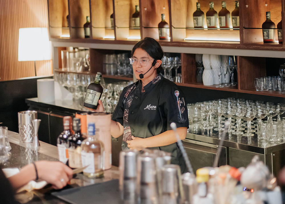 La joven bartender Alejandra Hermoza de Muna Craft Bar logró el primer lugar de la competencia “Artisans of Taste”, organizada por ron Diplomático, con su cóctel Mishky, una bebida a base de Diplomático Reserva Exclusiva, Diplomático Planas y cacao.