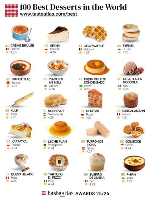 Además de la valoración general de la gastronomía peruana, postres tradicionales como la cremolada o el suspiro a la limeña fueron incluidos entre los mejores del mundo en categorías específicas, reconociendo la calidad de las técnicas y sabores que ofrece la cocina criolla peruana.