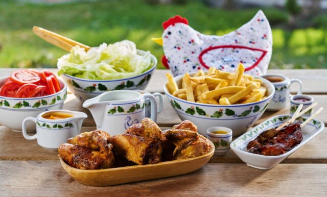 Sus pollos bebés, sazonados con insumos de calidad, se acompañan de los complementos perfectos: papas peruanas 100% naturales, crocantes por fuera y cremosas por dentro; pancitos recién horneados; ensalada fresca y crujiente; y su famosa mayonesa.